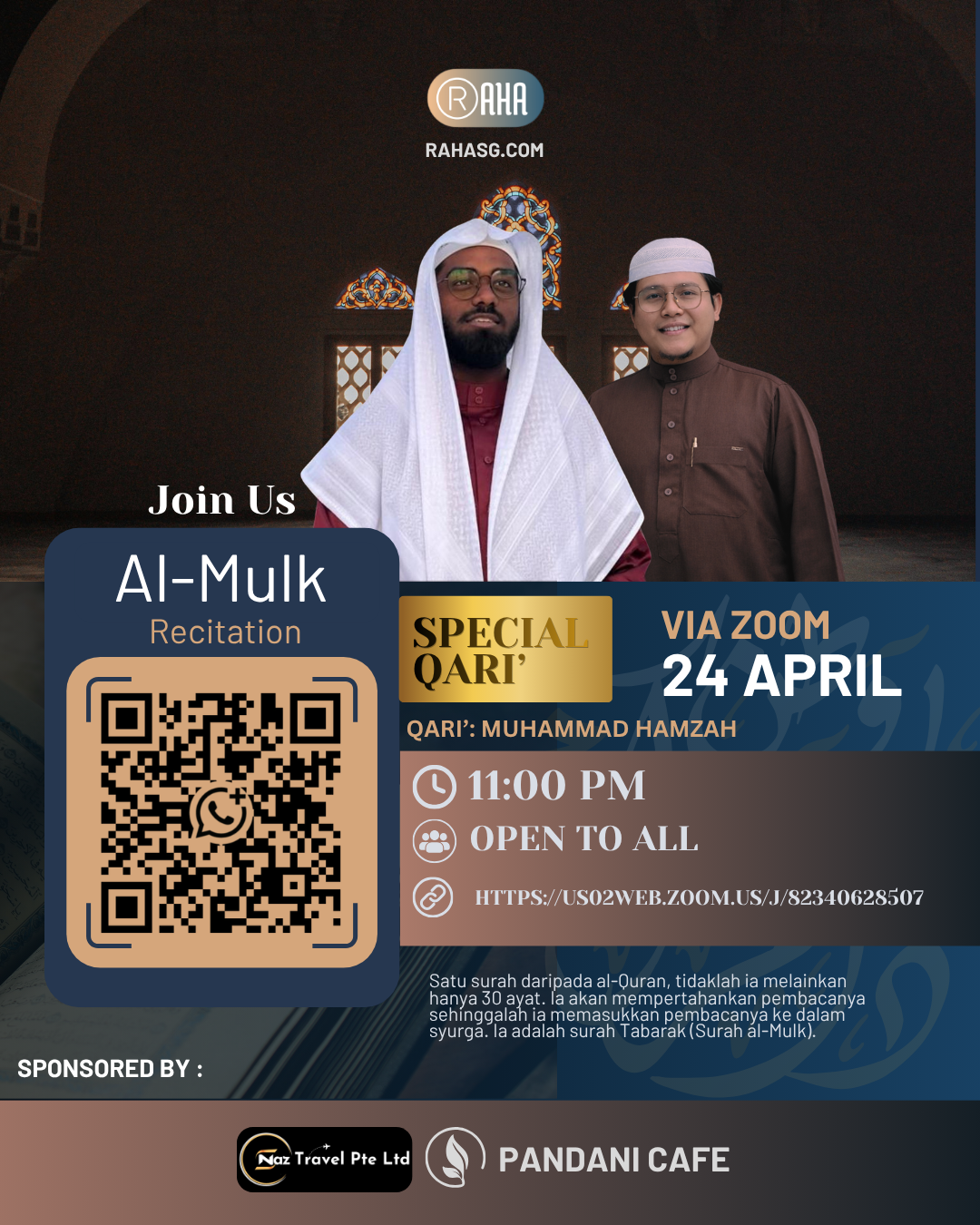 Mulai malam ini, sertai ramai saudara Muslim dalam bacaan dan tadabbur Surah Al-Mulk bersama Ustaz Ulul Azmi secara langsung di Zoom — sepenuhnya percuma.